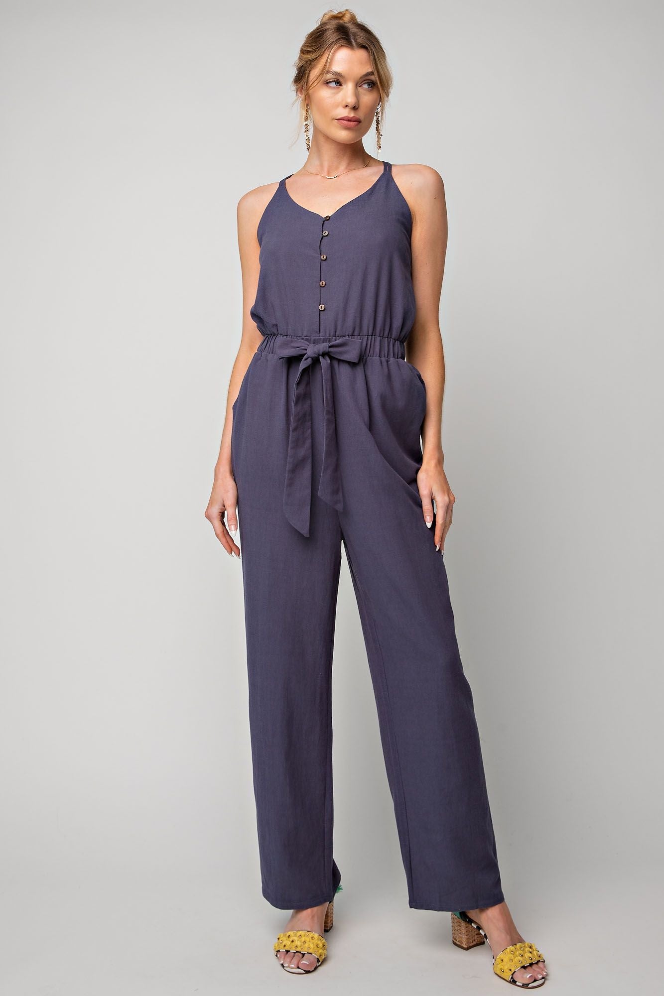 Get ready to conquer the fashion world with the Admiral Navy Pant Suit! Made by Easel, this jumpsuit features soft washed twill and a button down design. The tie waist and pockets add both style and convenience. Perfect for effortless cool and comfort.