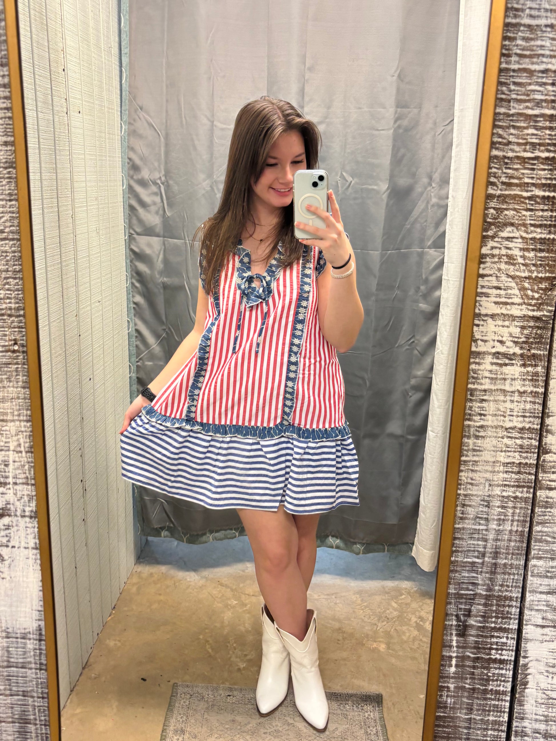 Pair it with sandals and a denim jacket for a timeless, all-American outfit that’s equal parts cute and comfortable!