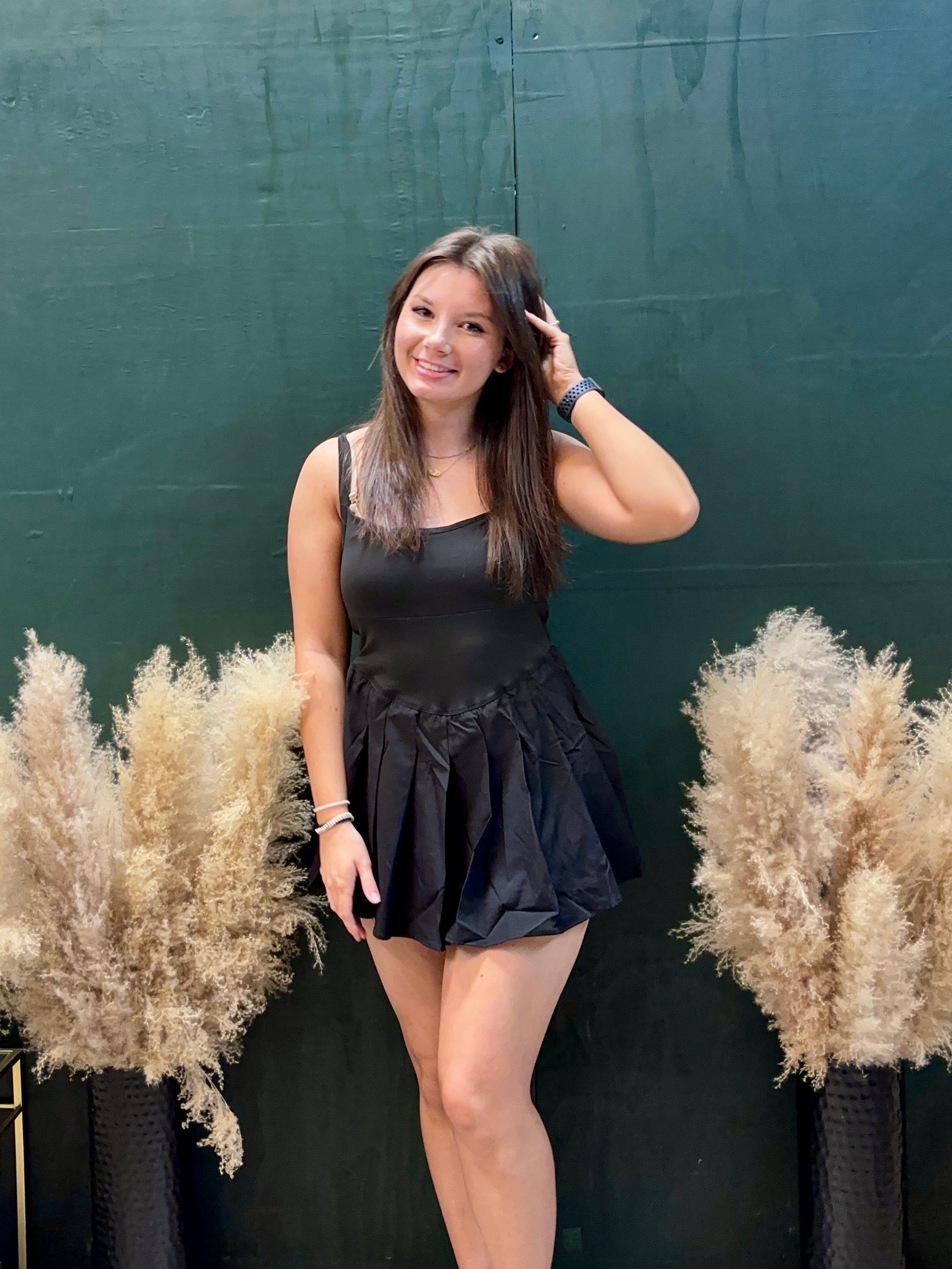 Serve style and confidence with the Baseline Beauty Active Dress — where sporty meets chic. Designed for movement and made to flatter, this sleeveless athleisure mini features a flirty pleated skirt and built-in under shorts for full coverage and comfort. Whether you're heading to the court, brunch, or just out and about, the integrated bra cap gives you light support while keeping things effortless.