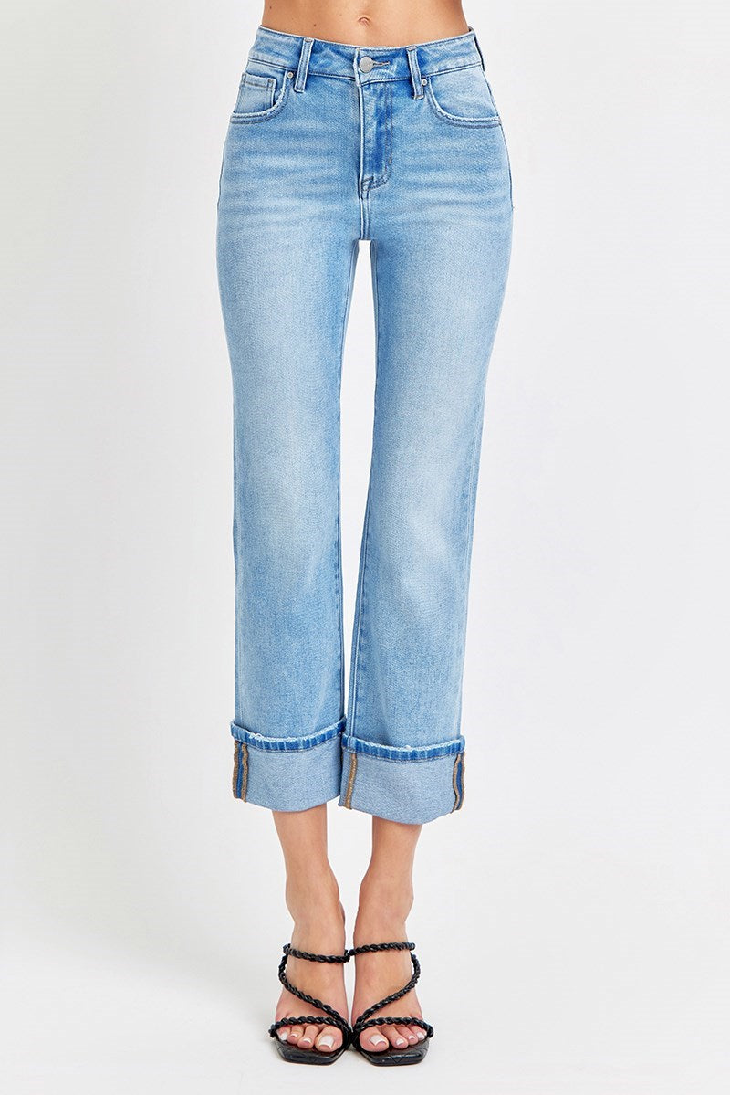 Elevate your style with Carolina Cuffed Risen jeans. These high-rise ankle straight jeans come with a 10 1/2 inch rise and a 25 1/2 inch inseam in size 3/26. Perfect for those looking to add some edge to their wardrobe.