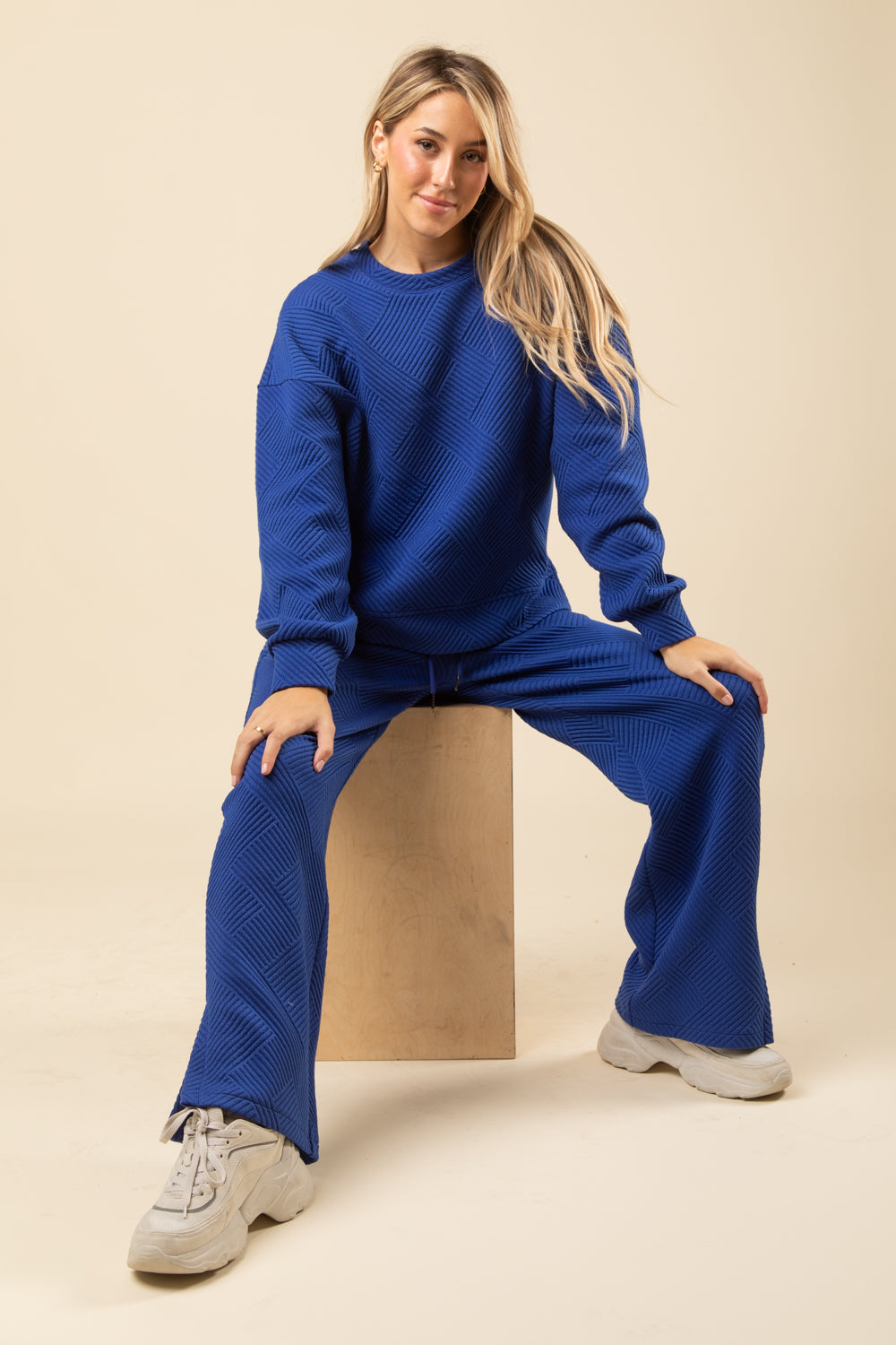 Add a touch of cozy to your day-to-day with this luxe loungewear set! Our Quilted Double Knit Loungewear Top & Pants Set features a Casual Oversized Sweatshirts Top with long sleeves, drop shoulder, round neck, and side slit – plus Wide Leg Comfy Pants with elastic high waist, side pockets, side slit, and drawstring. You'll be laid-back and comfy all day long!