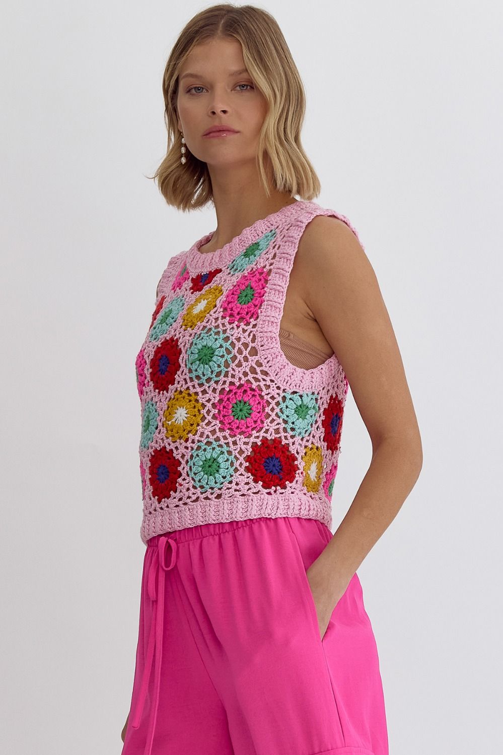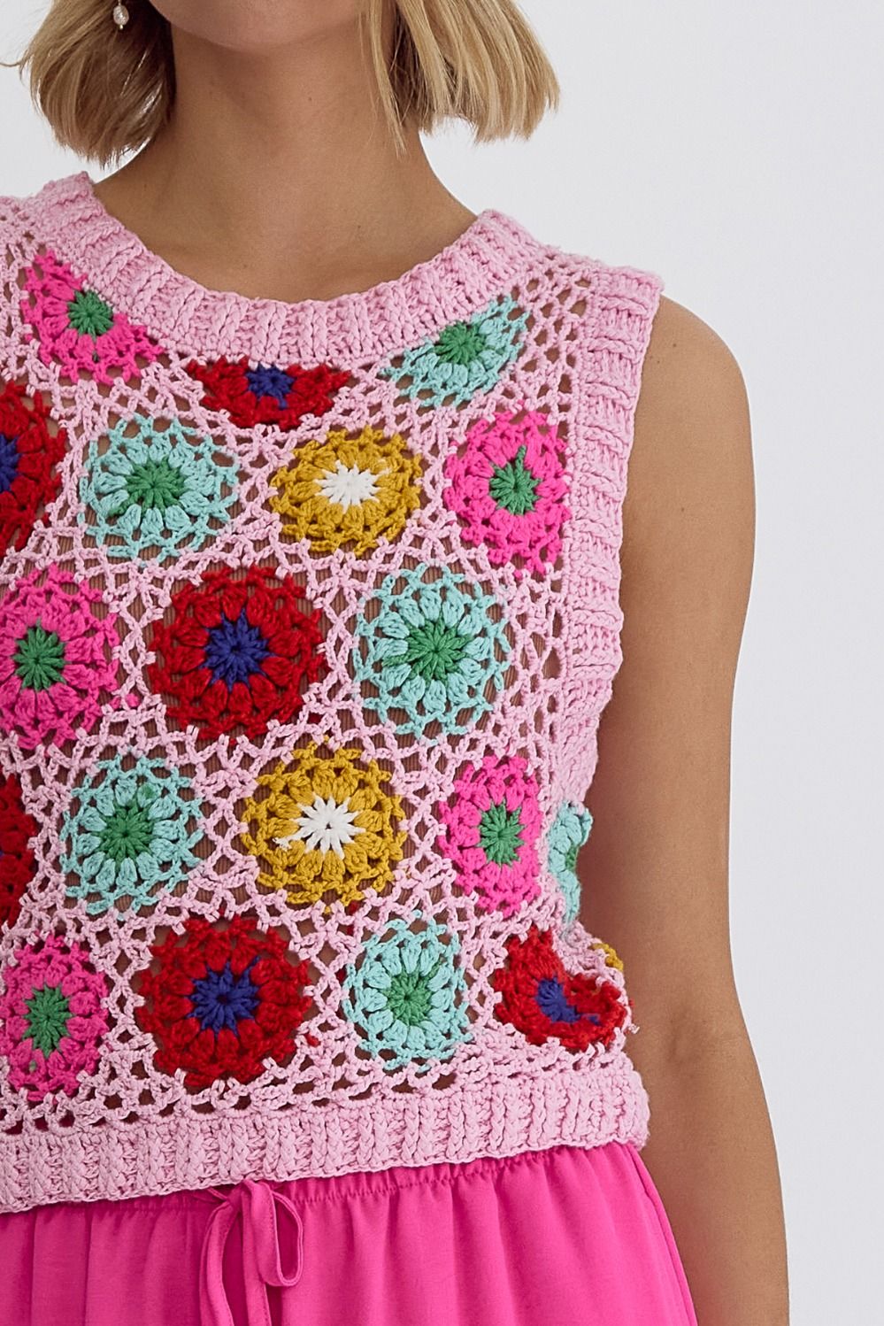 Get ready to bloom with our Flower Power Crochet Top! This floral crochet knit top features ribbed detailing for a touch of texture. Perfect for any season, this lightweight and semi-sheer top can easily be dressed up or down. Say goodbye to boring basics and add some flower power to your wardrobe!