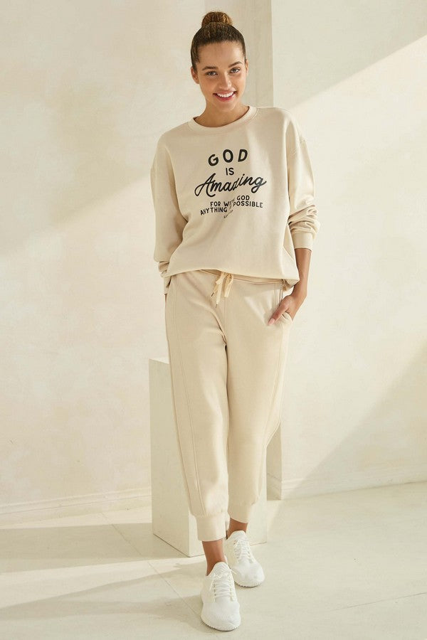 Step into a world of comfort and inspiration with our God's Possibilities Cozy Graphic Sweatshirt. Designed to remind you that with faith, all things are possible, this sweatshirt features a bold, uplifting graphic that makes a statement wherever you go. Whether you’re relaxing at home, out with friends, or on a casual outing, this piece adds a touch of divine inspiration to your everyday look.
