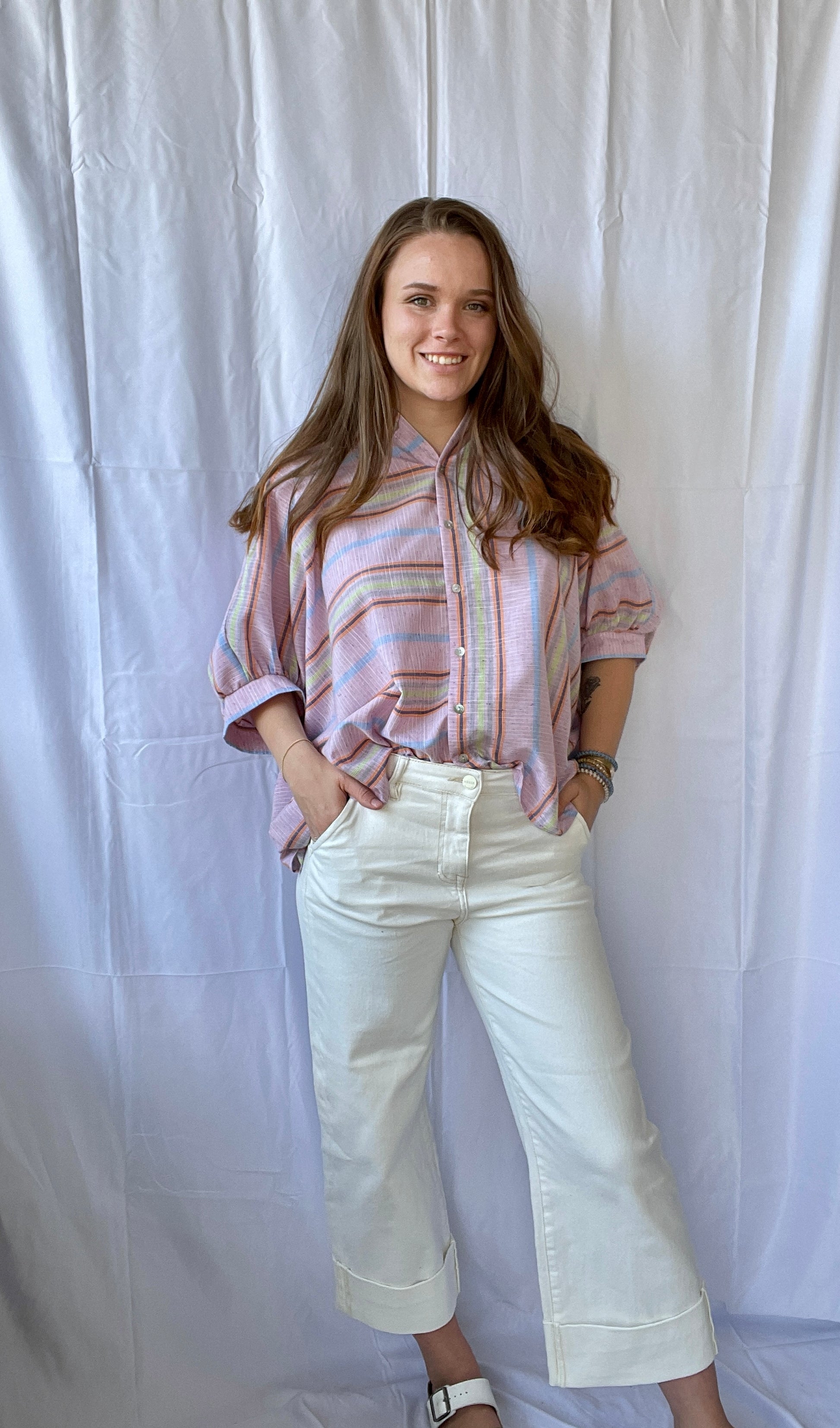Elevate your denim game with our Ivory Luxe High Rise Wide Cuff Jeans. The high rise and wide leg provide a flattering fit, while the cuffed hem adds a touch of playfulness. With functional front pockets and a 10 3/4" rise, these jeans are both stylish and practical. Inseam measures 25" after cuff in size 3/26.