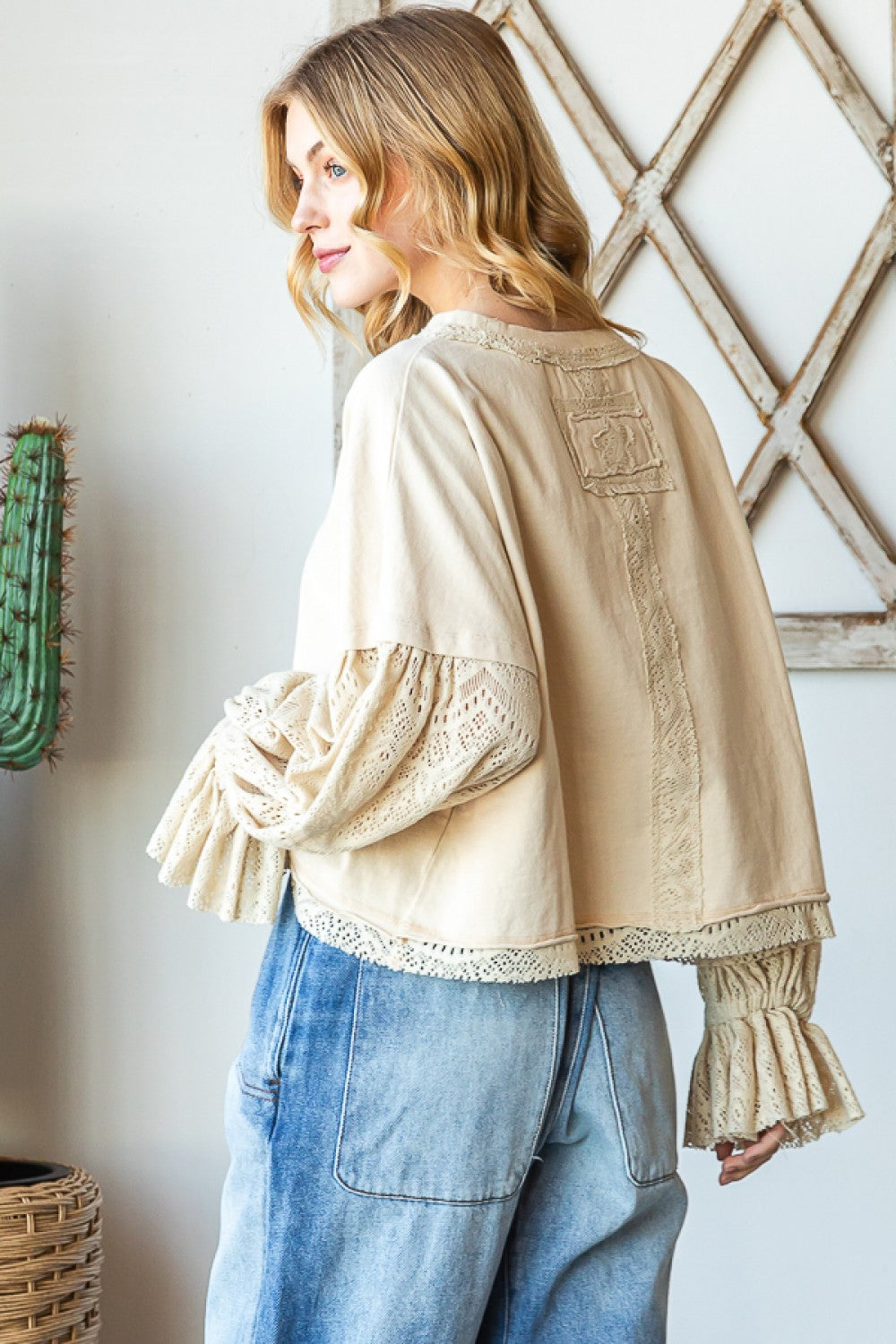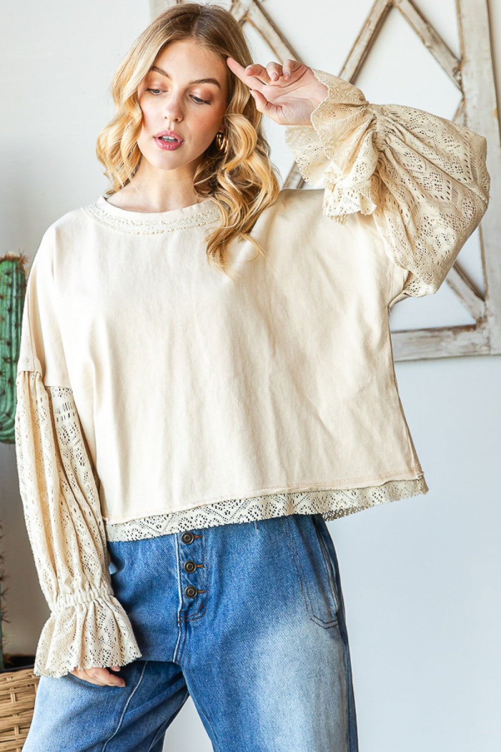 Get ready to turn heads in our Lacey Top! This washed lace puff sleeve top features a unique mineral wash detail for a relaxed fit that's both comfortable and stylish. Perfect for any occasion, this top will make you stand out in the best way!