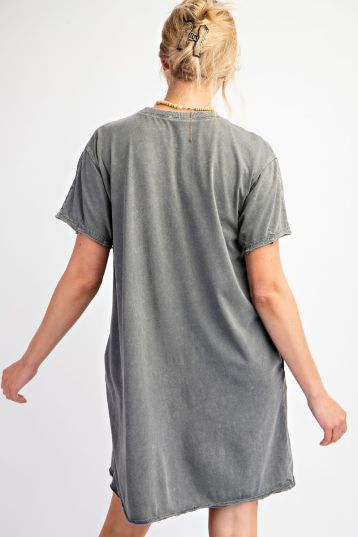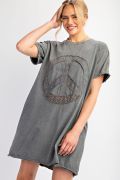 Unwind in style with our Peaceful Easy Feeling T-Shirt Dress. This cotton jersey tunic dress features a mineral wash for a laid-back vibe. The rounded neckline and dropped shoulders add to the relaxed fit, while the patchwork peace sign design on the front adds a playful touch. Easy pull-over style for effortless wear.