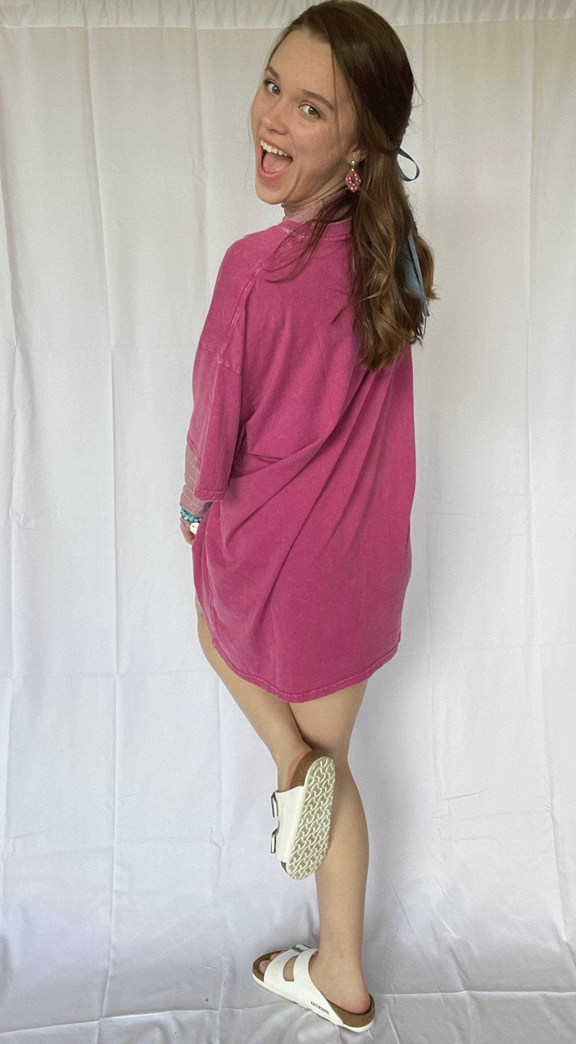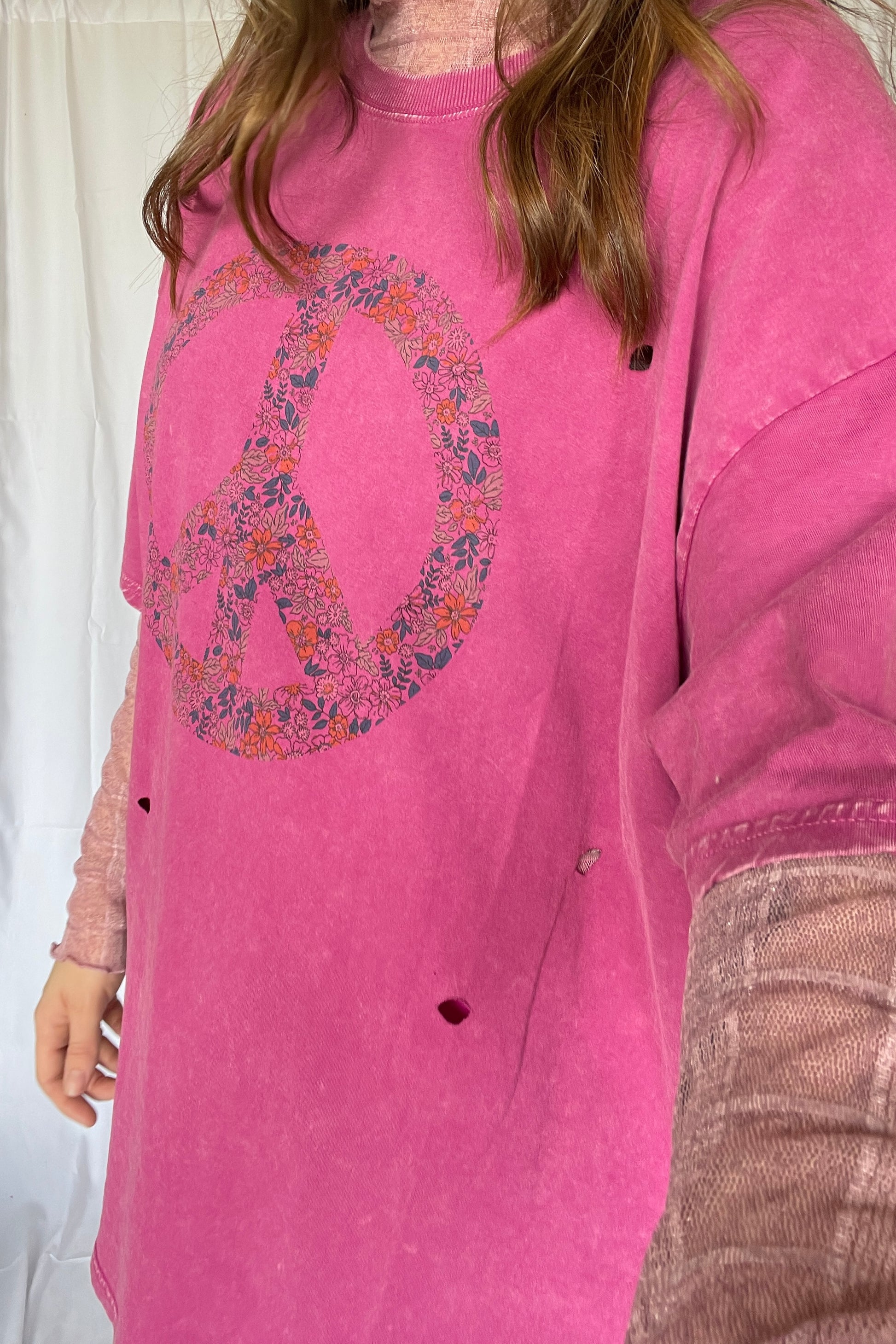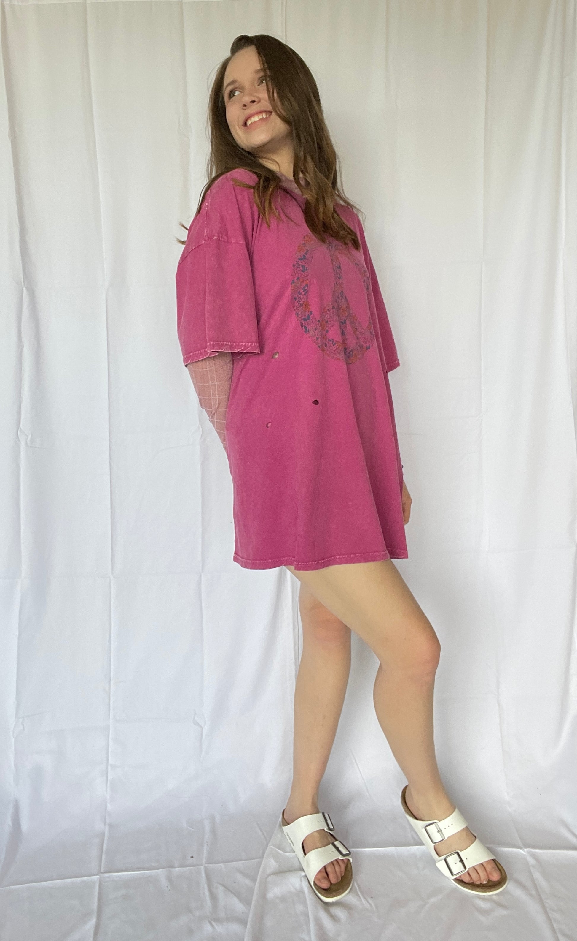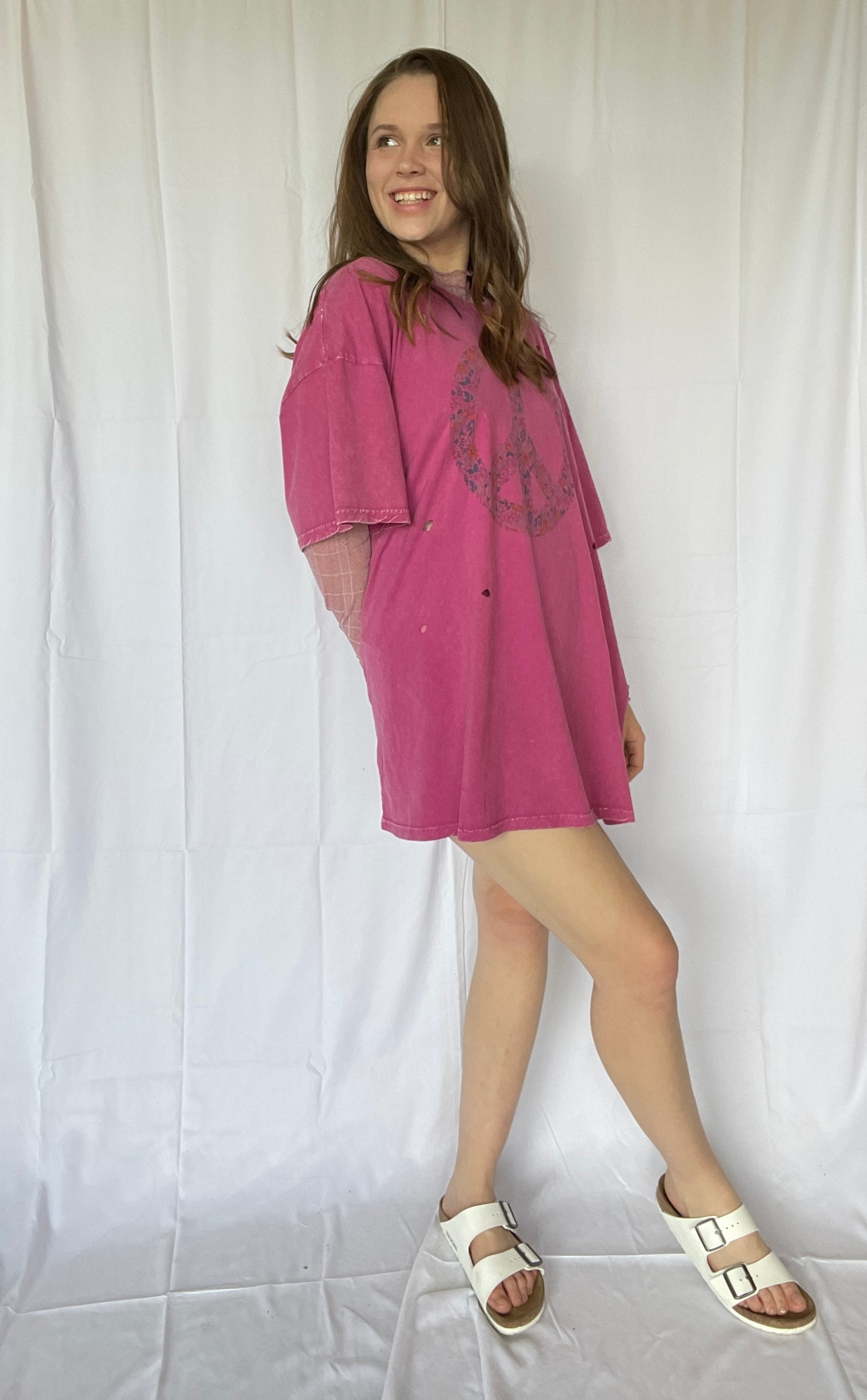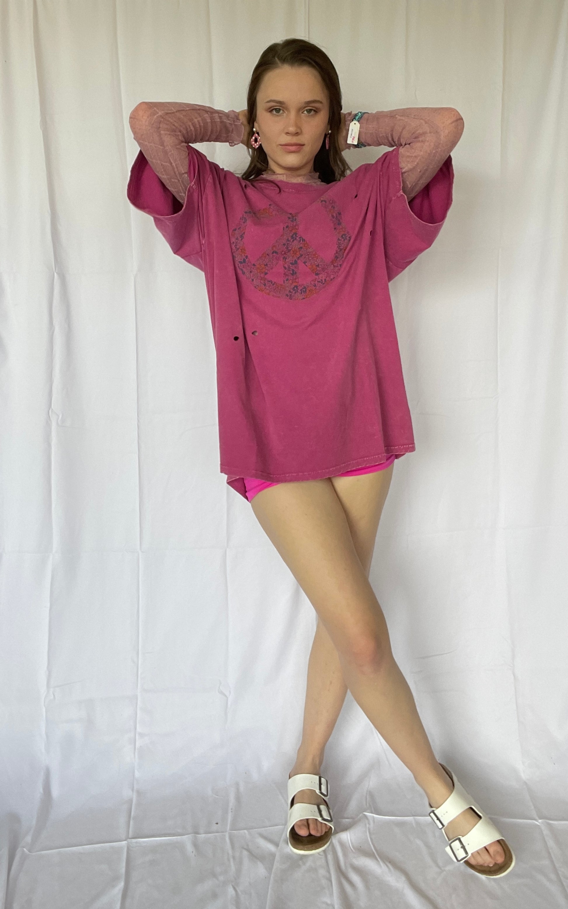 Achieve ultimate relaxation in our Feeling Peaceful Oversized Tee. Featuring a round neckline with ribbed detailing, dropped shoulder sleeves, and a distressed, mineral washed finish. The oversized and boxy silhouette adds to its comfy and laid-back style. (Note: may cause excessive snuggles and lounging.)