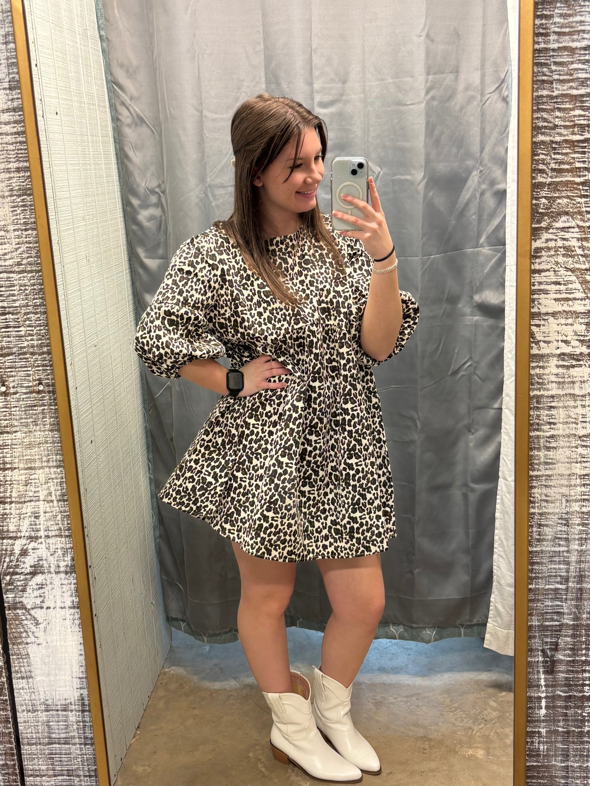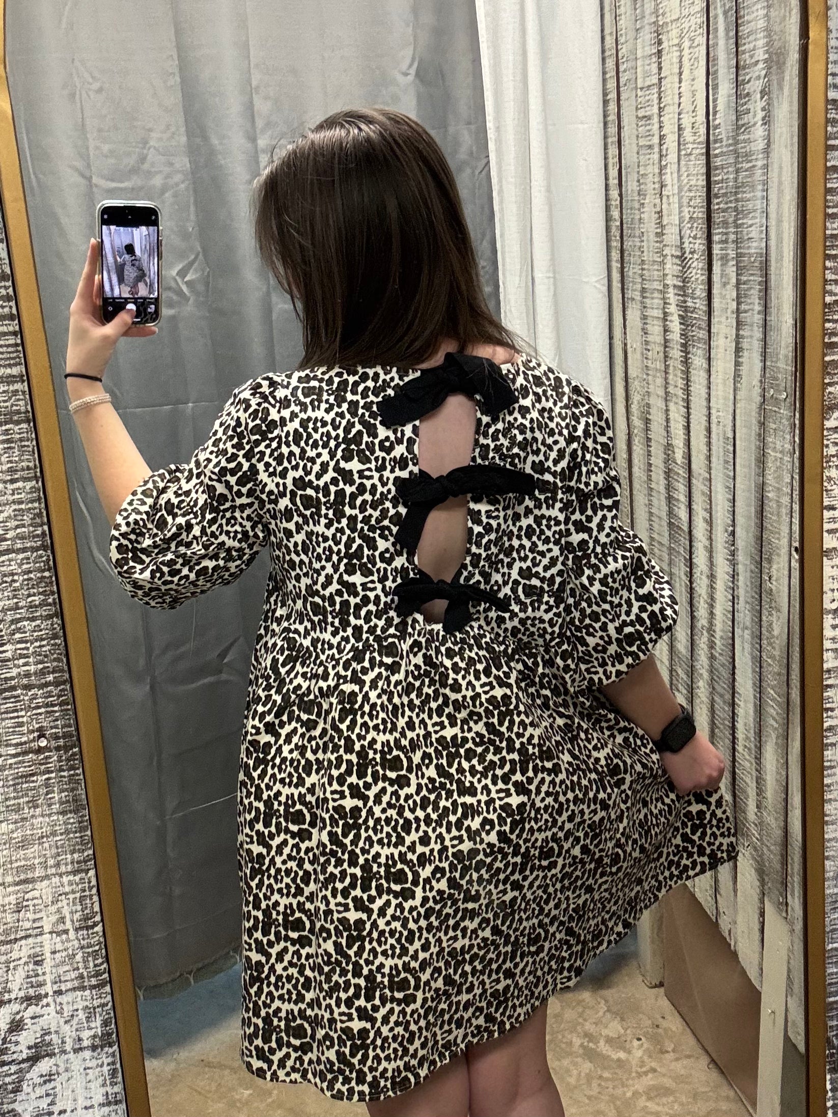 Playful, pretty, and full of charm — meet the Sweet on Spots Dress, your new favorite way to wear leopard print! This darling dress features a soft and breezy silhouette with an all-over leopard pattern that’s as fun as it is flattering. The real showstopper? The adorable black bows down the back, adding the perfect touch of sweetness to this wild little number.