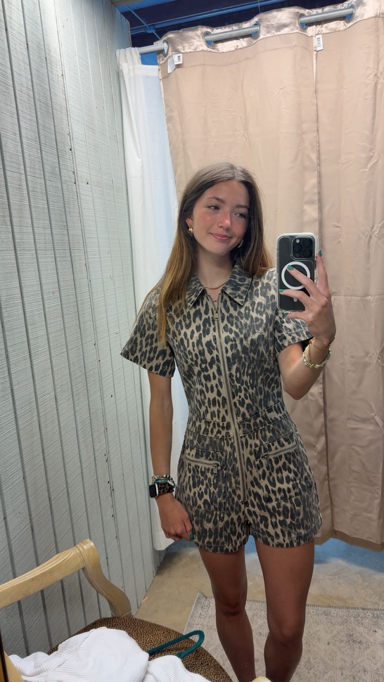 Turn heads and steal the spotlight in our High Noon Hottie Romper - where wild meets western with a bold, untamed edge. The zip-front leopard print romper is made for the girl who's equal parts sass and saddle. The flattering fit hugs in all the right places, while the short sleeves and easy zipper closure keep it effortless and cool for those high heat, high style moments.