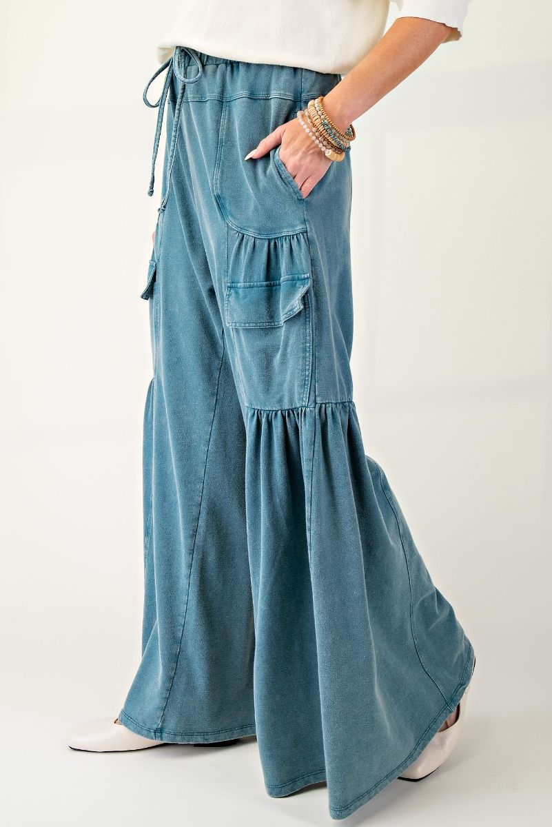 Unwind in effortless style with The Ruffle Retreat Pant. Designed for ultimate comfort and laid-back elegance, these mineral-washed terry knit pants are your go-to for cozy days at home or casual outings. Featuring a wide-leg silhouette and a loose, relaxed fit, they offer the perfect balance of ease and sophistication.