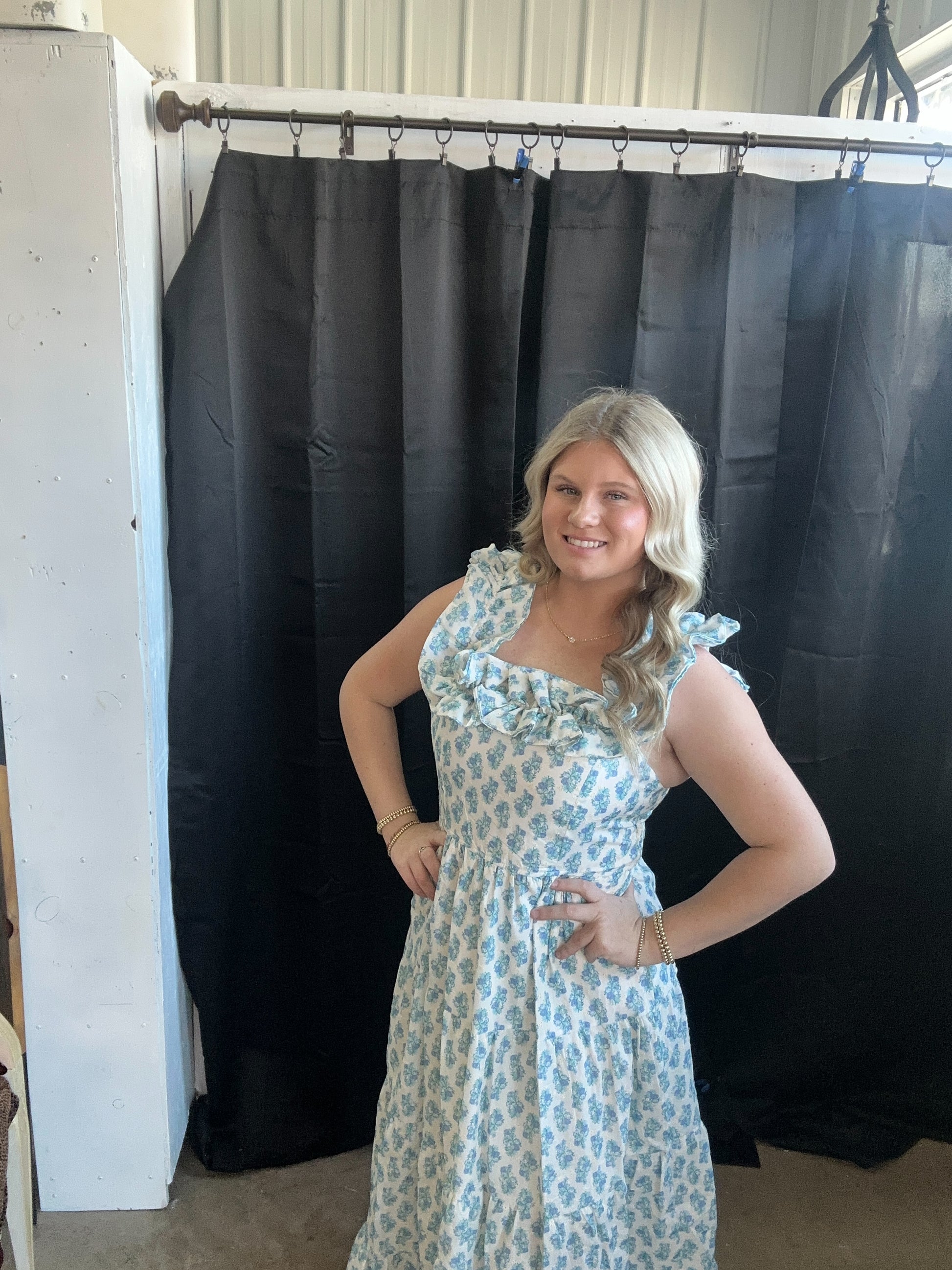 Step into a garden of blooms with The Summer Garden Tiered Dress—a perfect blend of elegance and comfort for your spring and summer occasions. Crafted from soft cotton eyelet fabric, this dress features delicate floral prints that evoke the fresh beauty of a sunlit garden. The ruffle sleeves add a playful touch, while the tied-back detail offers an adjustable, flattering fit.