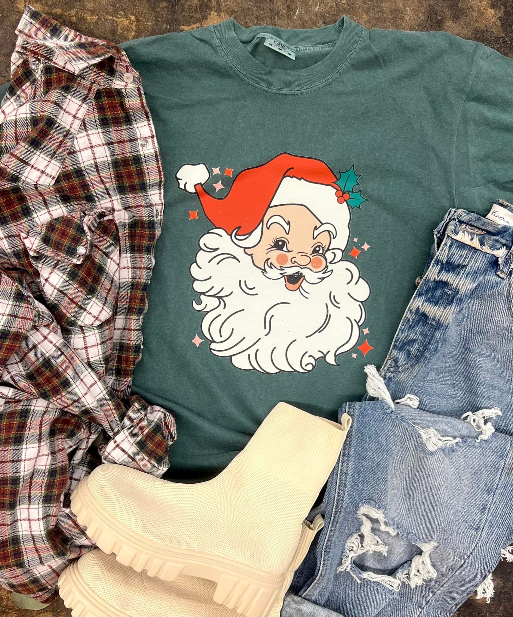 Get into the holiday spirit with our Vintage Santa Tee! This festive design brings a classic, retro vibe to your wardrobe, featuring a charming Santa graphic that's sure to make you smile. Made with Comfort Colors Emerald fabric, this tee offers a rich, vibrant green perfect for the season, while ensuring maximum comfort all day long.