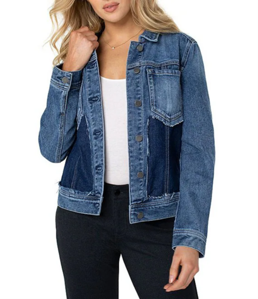 Step into effortless style with the Vintage Vibes Denim Jacket by Liverpool, where classic design meets modern edge. This jacket combines the timeless appeal of denim with contemporary cut-out details for a unique, shabby chic twist.