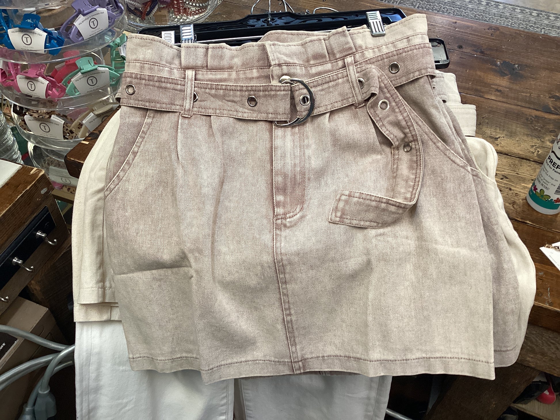 Elevate your casual look with our Washed-Denim Style Belted Skirt. Made with a stylish denim wash and a trendy belted waist, this skirt is the perfect combination of comfort and fashion. Elevate your wardrobe with this versatile and on-trend piece.